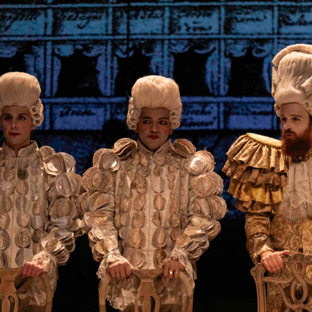 Peter Shaffer si ispira alla leggenda secondo cui Antonio Salieri avrebbe avvelenato Mozart per invidia. Il dramma, debuttato a Londra nel 1979, divenne celebre con il film di Miloš Forman, vincitore di otto Oscar. Nella regia di Bruni/Frongia, il testo si trasforma in un sogno allucinato e sontuoso. Ferdinando Bruni è un Salieri anziano, mentre Daniele Fedeli interpreta un Mozart irriverente e geniale. I costumi di Antonio Marras uniscono elementi settecenteschi e moderni, creando un dialogo tra epoche. A Vienna, nel 1823, Salieri rivive la sua ossessione per il talento divino di Mozart. Shaffer mostra l’invidia come forza distruttiva: Salieri non uccide Mozart, ma vuole che il mondo lo creda, per restare legato al suo nome. Tradito da Dio, sfida il Creatore in una guerra tra fede, arte e gelosia.